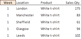 From the data table above, we want to write a formula that retrieves the value of sales in Sheffield (61).